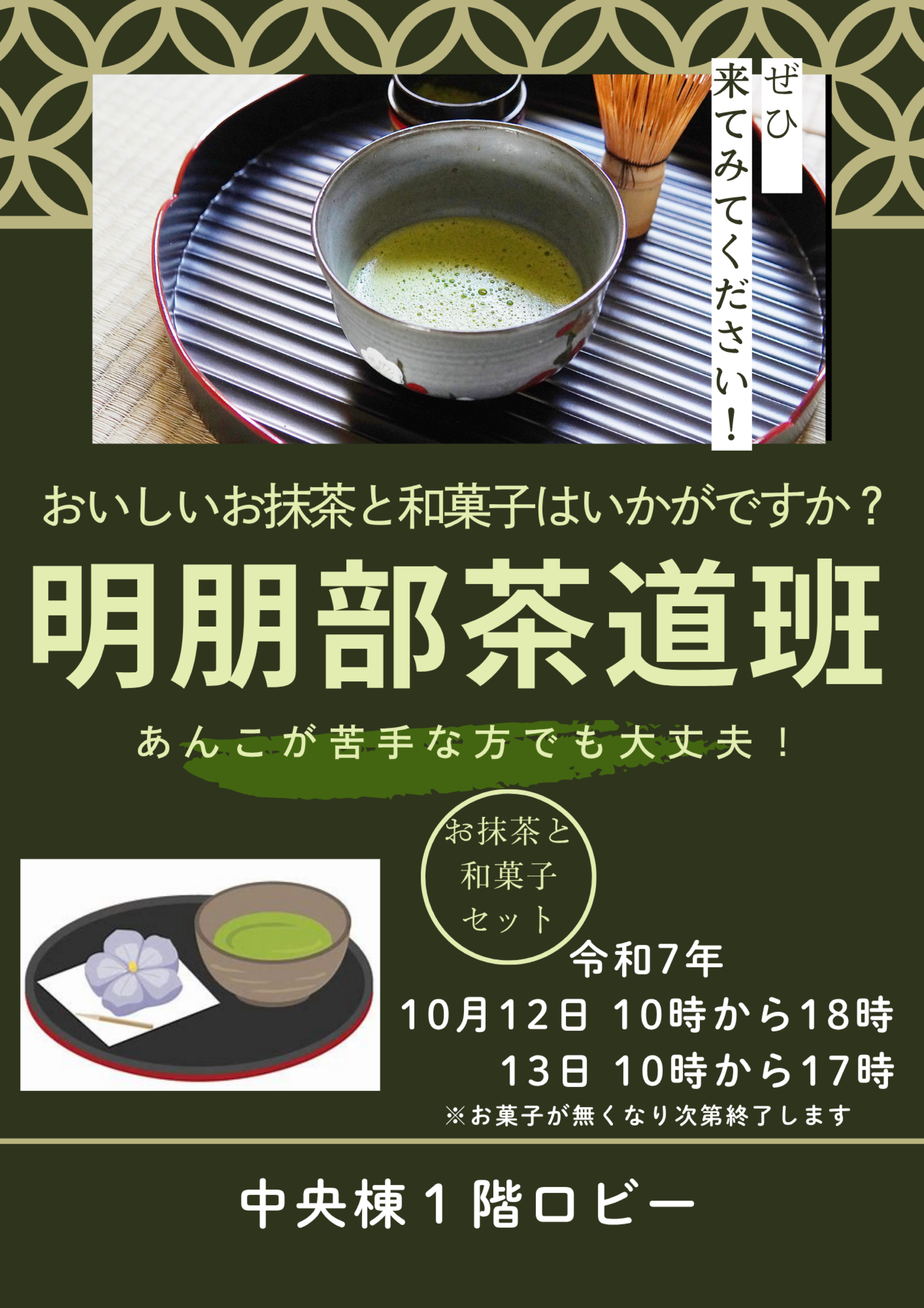 【明朋部 茶道班】(中央棟1階)大学祭参加茶会